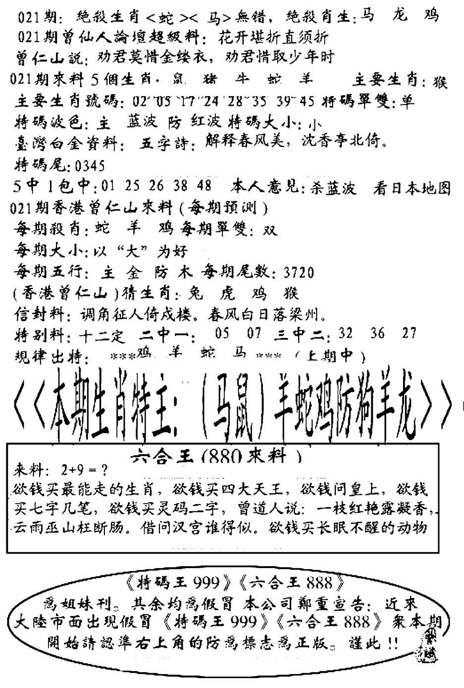 另版六合禅机A