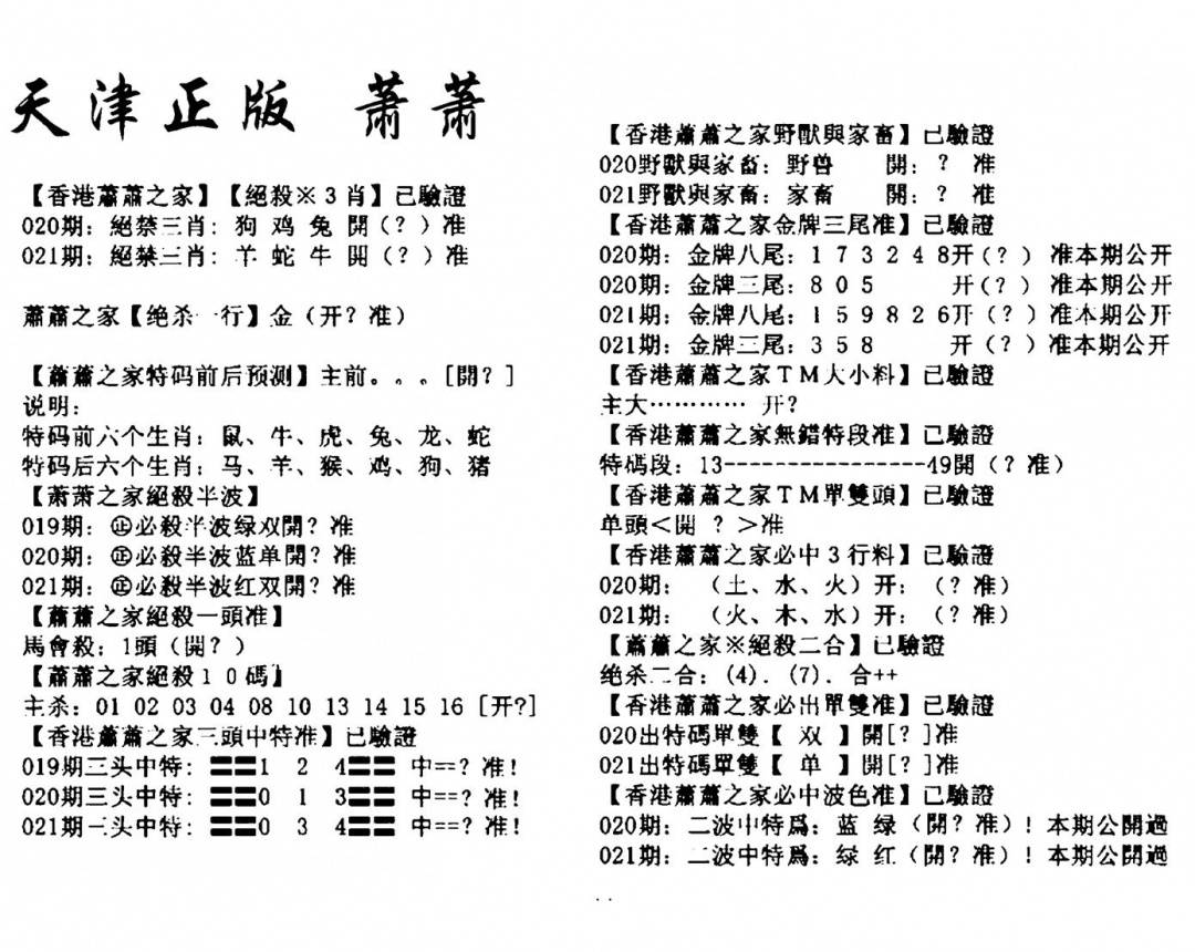 老版天机报