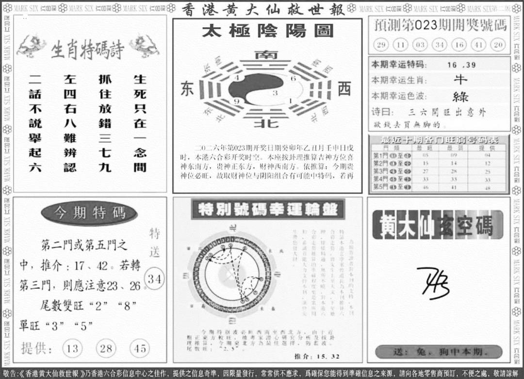 另版黄大仙灵码B