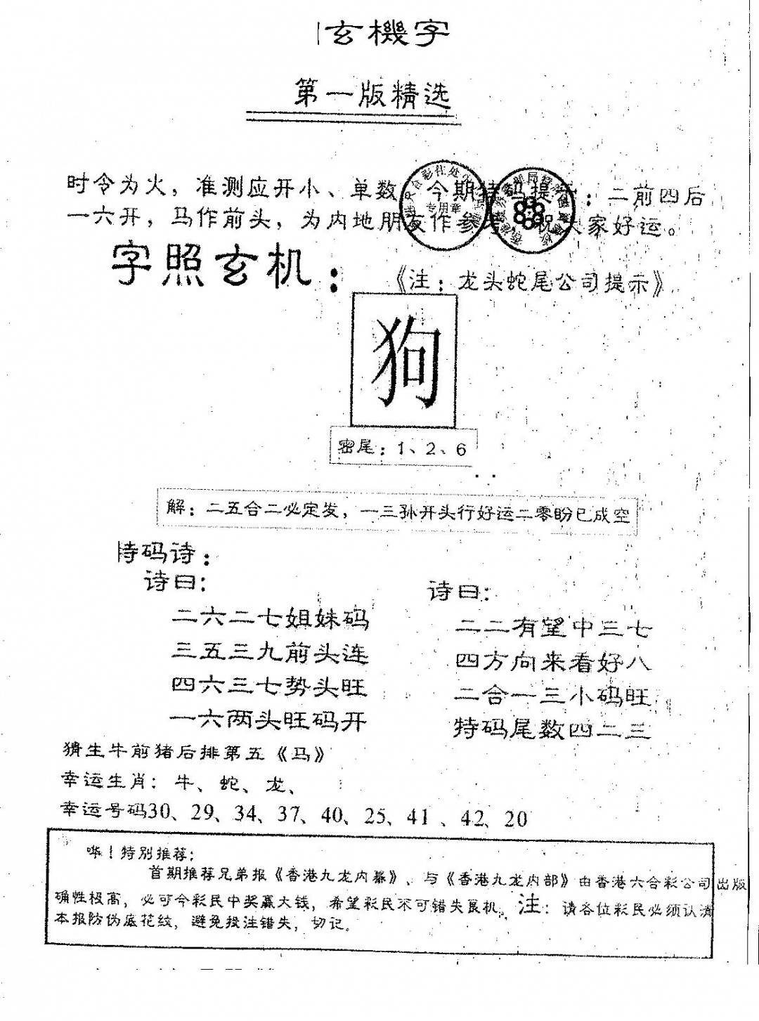老版跑狗图
