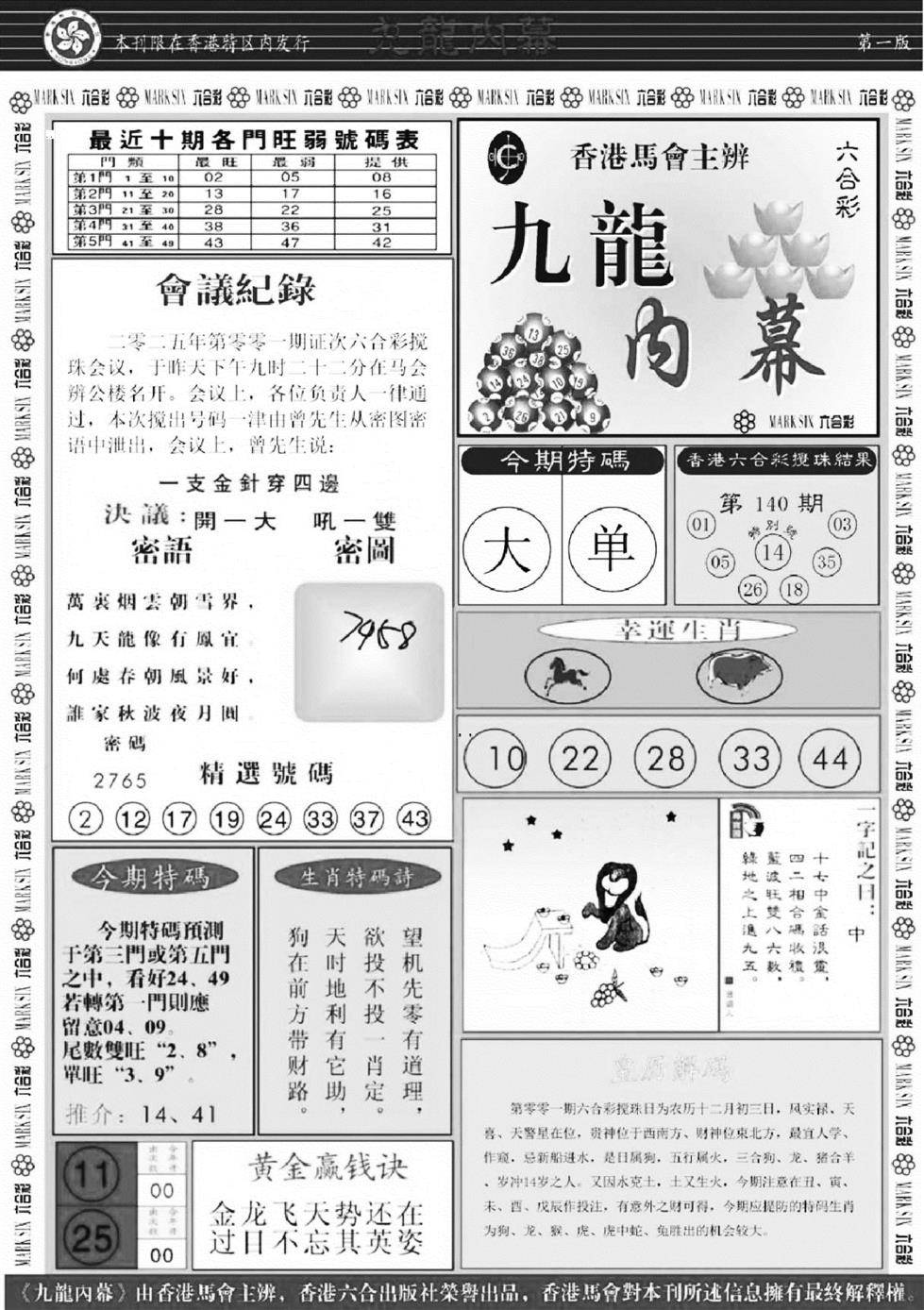 九龙内幕玄机报