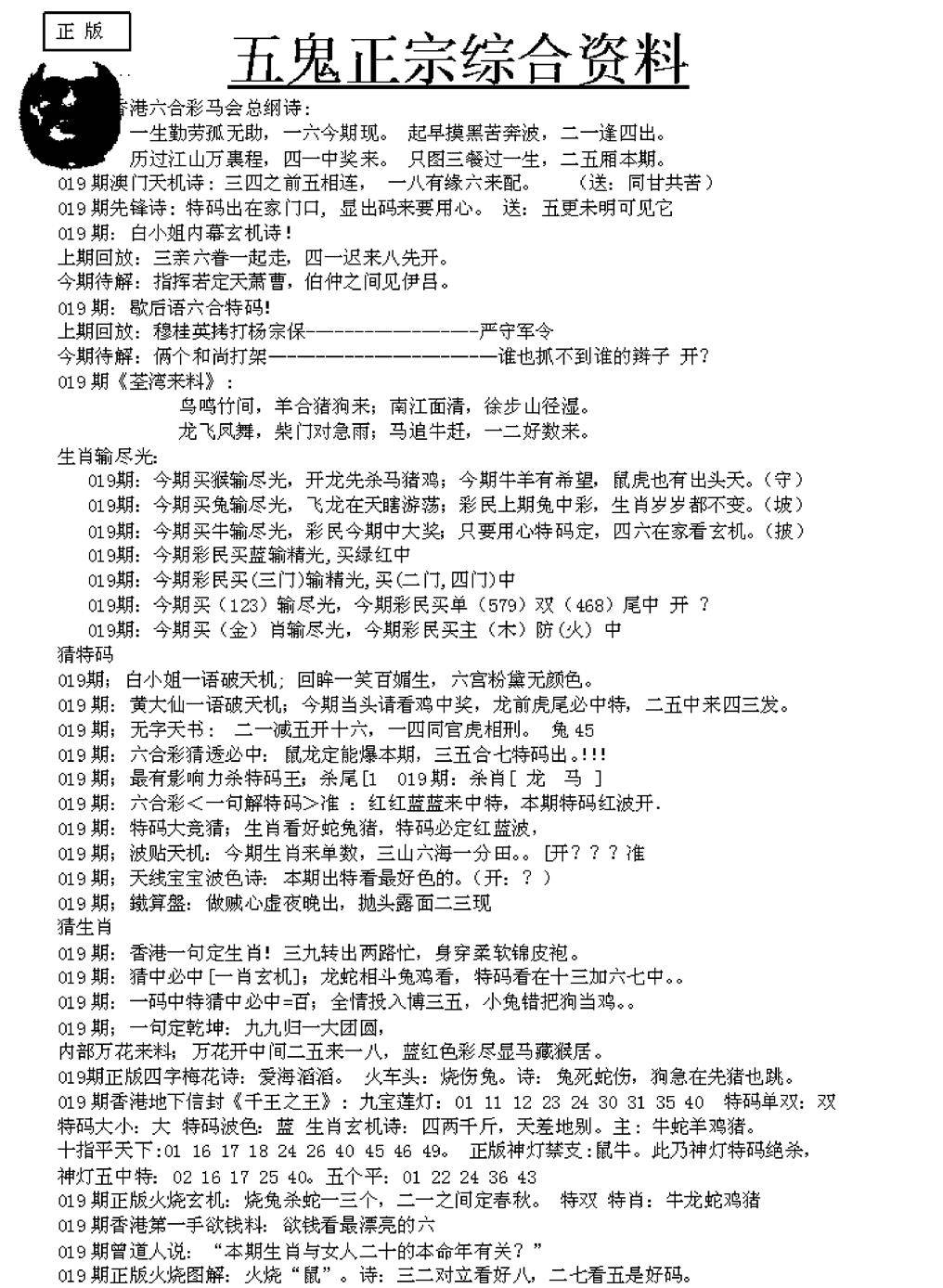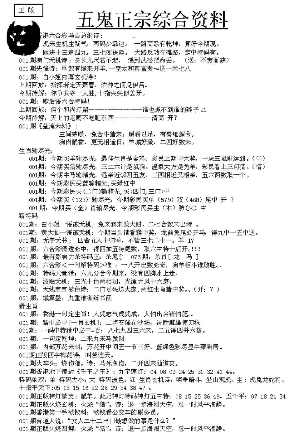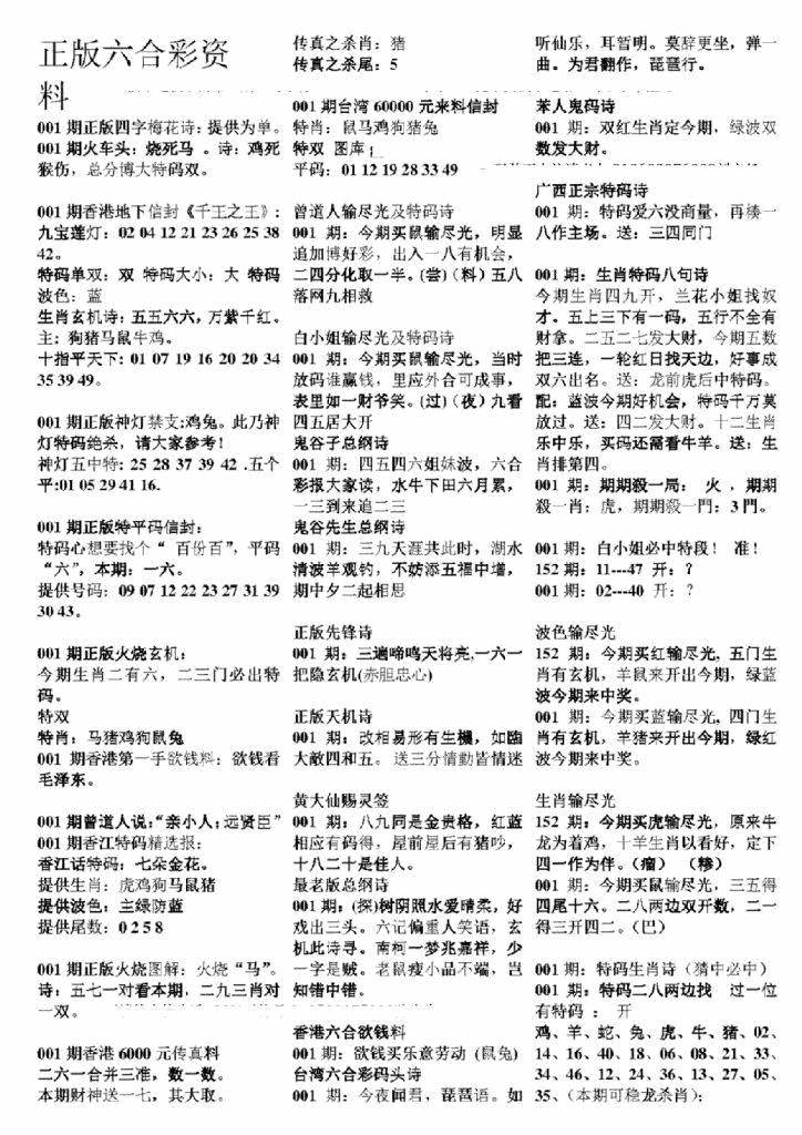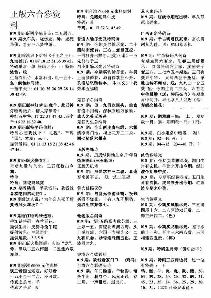 正版六合彩资料B