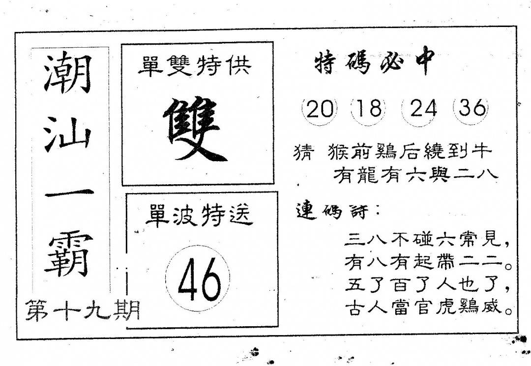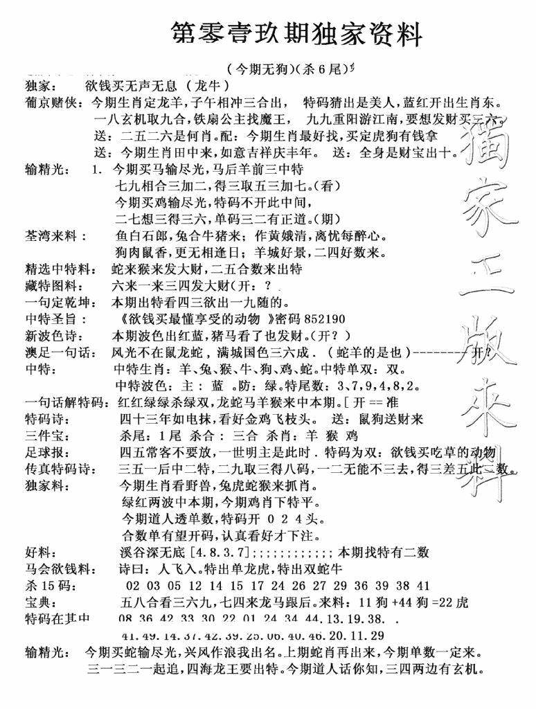 今日抓特码A(正版)