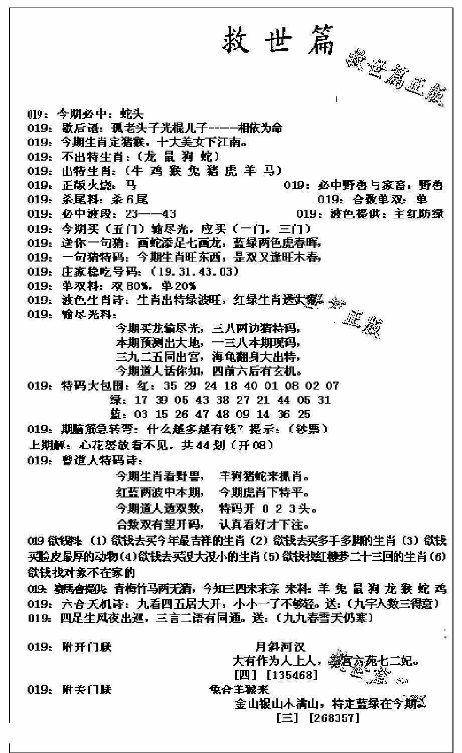 曾道人特码救世报B
