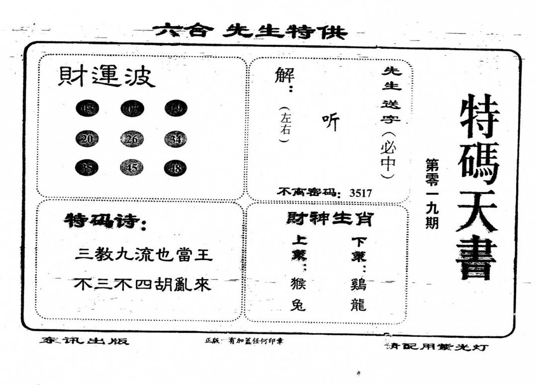 另版心水特码(早图)