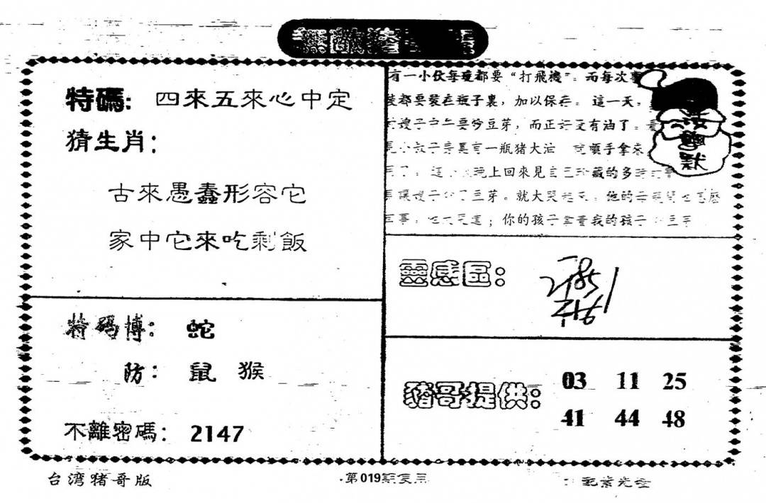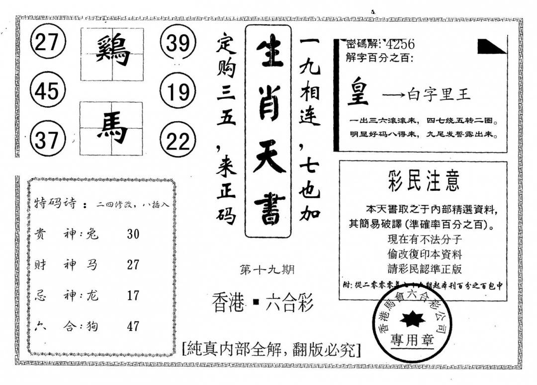 另版一心猜特码
