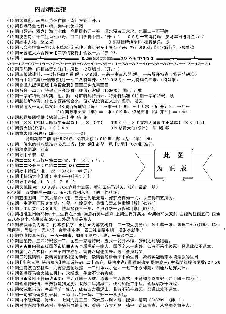 新版内部玄机A