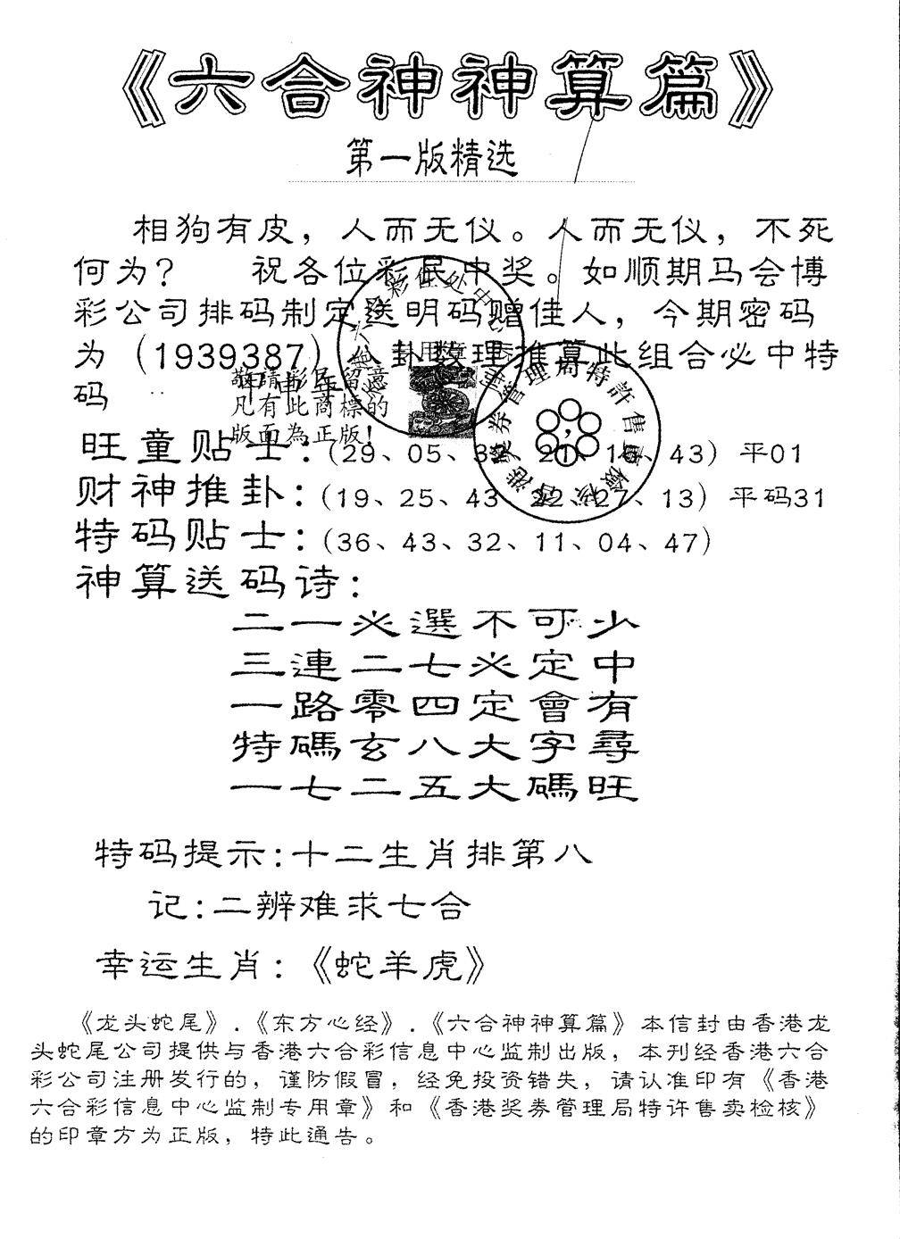 六合神算篇B