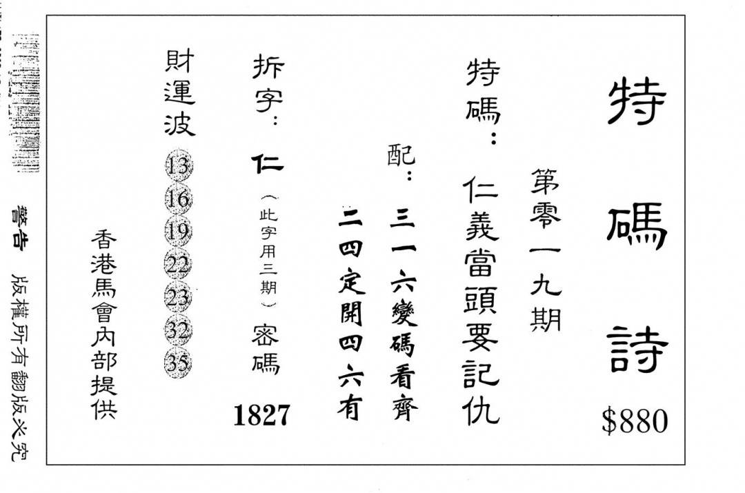 香港天机信封