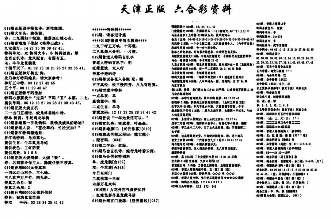 天津正版六合彩资料